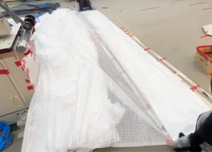 ②要望に合わせた幅にする為、カットした2枚を長さ方向に繋ぐ(繋ぎ箇所は1か所)