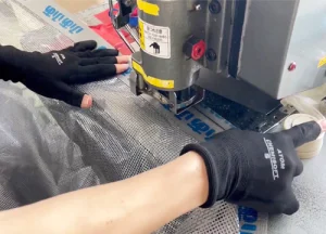 ⑤等間隔にハトメを取り付け、出荷